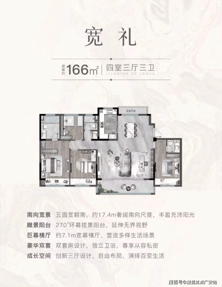 166㎡四室三厅两卫:1梯2户设计,总价区间约413-430万元