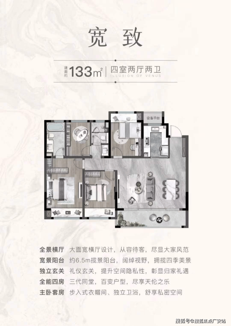 133㎡四室两厅两卫:1梯2户设计,总价区间约330-350万元