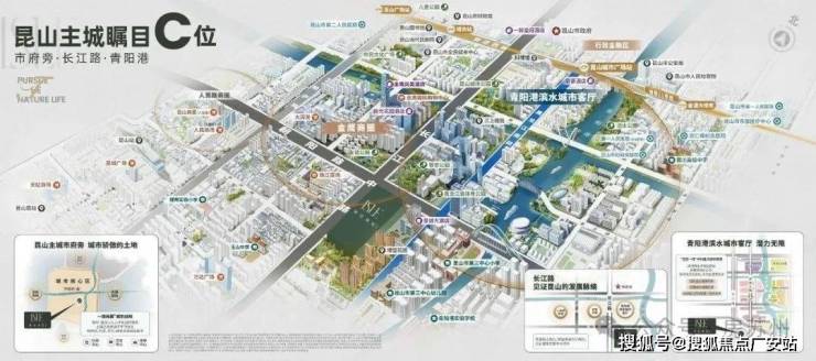 万科·璞拾青阳静立长江路旁,距市区核心金鹰商圈仅约900米(数据来源百度测距直线距离),昆山人心中毋庸置疑的时代中芯之地。