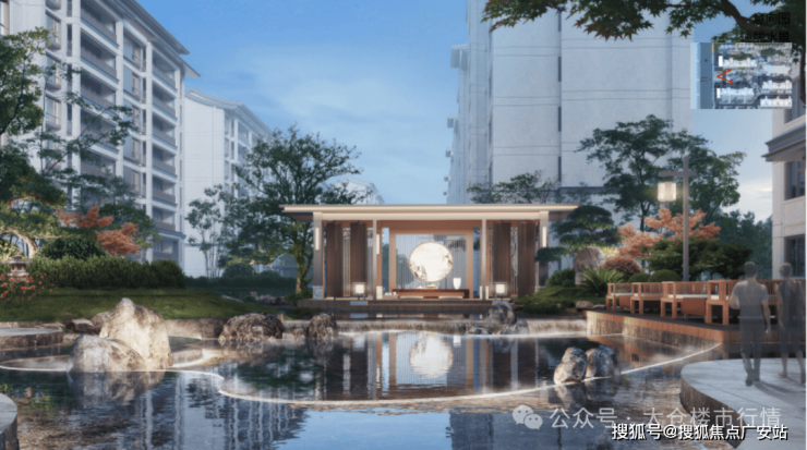 碧水石桥,袅袅林烟。以一池水韵为中心,形成一种向心的、内聚的空间特性。水景即为风水之水,水可化煞“气乘风则散,界水则止”,大利财源。一池水韵通过叠山理水,营造苏式园景,搭配书香亭、风雨连廊等有机互通,形成以小见大的苏式景观,凭栏眺望之时更添身心惬意。