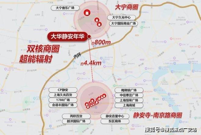 而大华静安年华,正落子大宁板块更靠近内环的黄金C位,以约800米直抵内环的稀缺站位,独享双核商圈超能辐射。(距离来源百度地图)