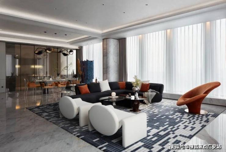室内设计上,用现代的元素与艺术的视角,将简洁、丰富、有意境的场景氛围融入到居住空间中,兼具雍容典雅与实用主义,奢华但不浮夸,呈现出一种自由、洒脱而赋有品质的生活意境,简洁的空间,精致的摆件,塑造了舒适时尚的空间,奢雅之余也彰显了大平层的生活精髓与空间气度。