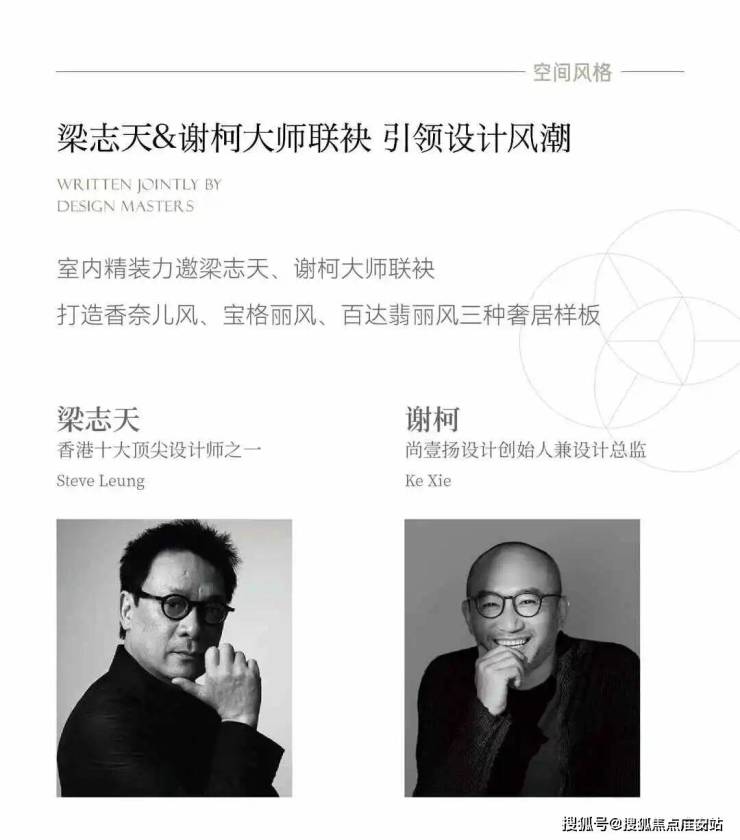 室内设计:大师精工——全球31位室内设计师之一,香港十大顶尖设计师之一,也被誉为中国现代简约之父;《梦想改造家》知名设计师,坚持以“做有诚意、人文的设计”的理念,将具有温暖与关怀的现代东方风格融入设计之中,也具有当代禅意空间建造设计巨擘之称。