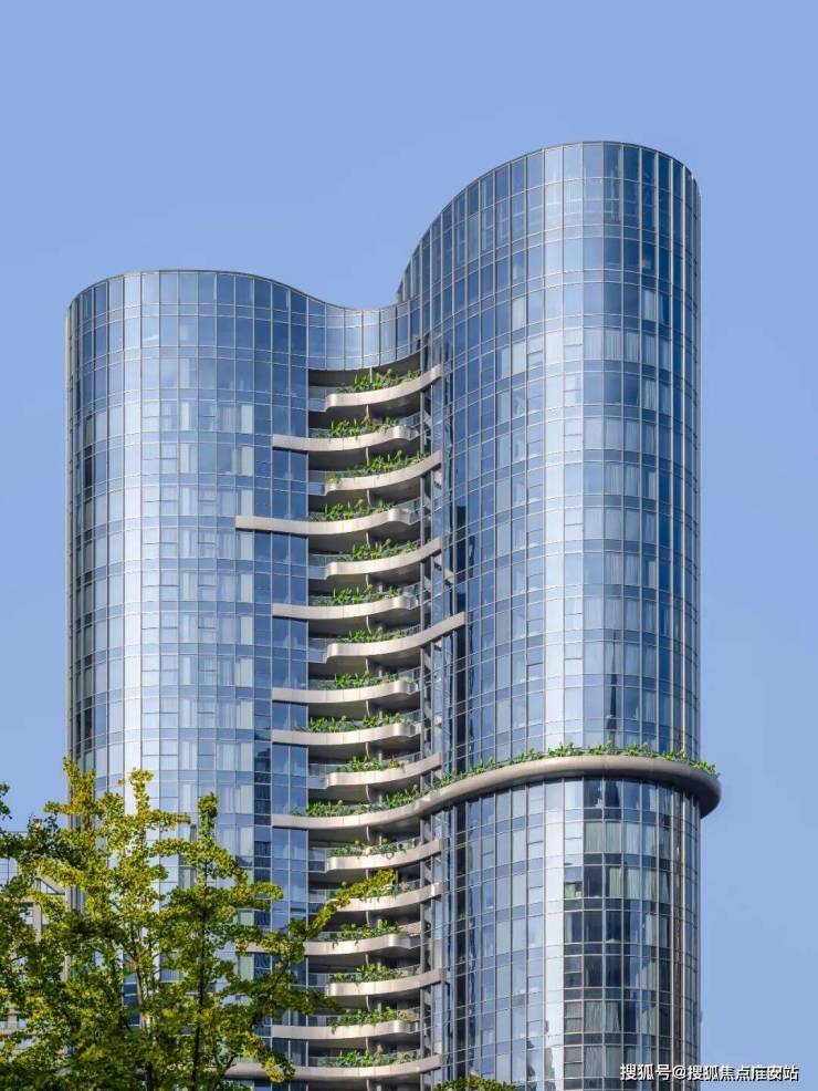 景观设计:入口景观及裙房屋顶花园打造双花园,以“钱塘江”“西湖”为设计灵感,提炼出“浪潮”“茶田”“茶花”为主题的景观元素融入形成艺术张力与场地情怀的融合。打造出赏景畅谈式私家花园,惬意的休闲空间放松静懿的生活境界。