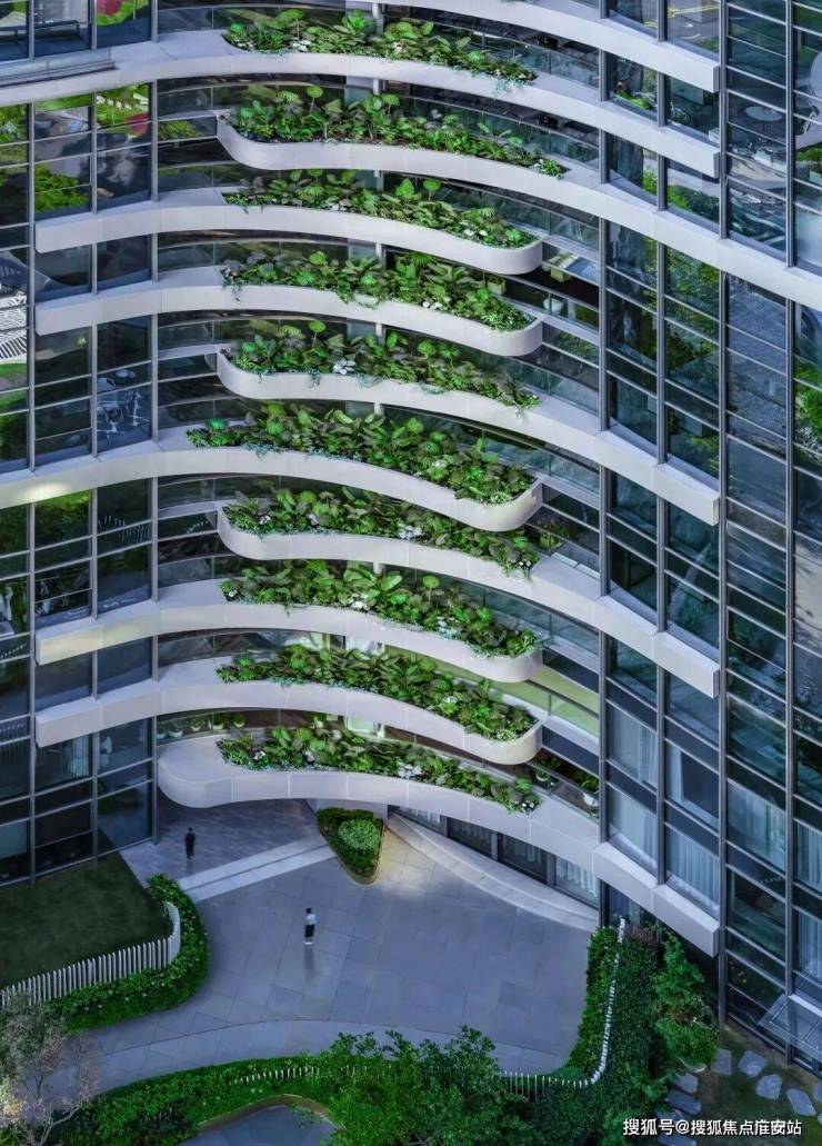 空中花园在建筑体量内部创造了充满生机与变化的专属景观,使得高楼环抱中的建筑无需过度依赖于外部城市环境带来的视觉景观。同时,从规划角度,其也是城市中的开阔露台,舒适的公共空间取代了往常封闭而严重依赖于空调调节温度的室内空间,带来流动的新鲜空气,生机勃勃的阳光。