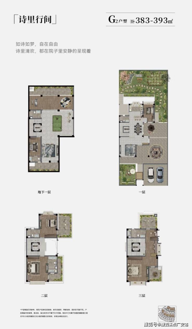 建筑面积约383-646㎡,部分户型含超大庭院与地下室,赠送面积高。