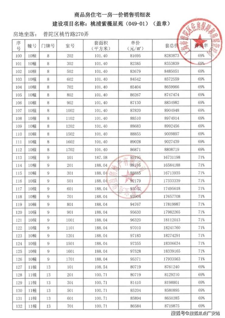 诚然,不可能所有项目都有这样的规格,但我理解的产品主义本就不是以价格来区分,而是态度。紫薇之星的出现再次让市场看到了宝华和东苑对于产品的态度。也正是因为有了这样的项目,让我这样有产品情结的人对这个市场充满希完整一房一价如下: