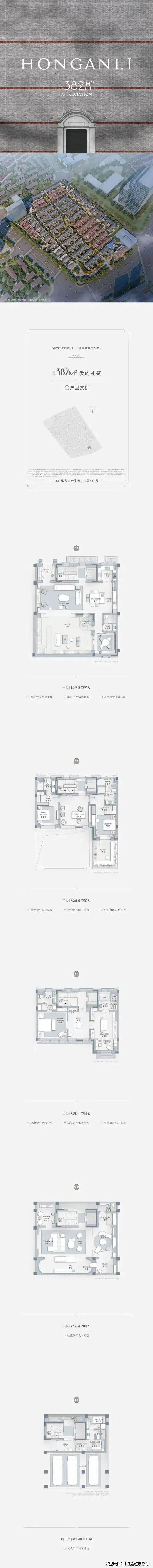C户型380平(地上三层地下两层)总价9500万-1.04亿,实际使用面积600多平方
