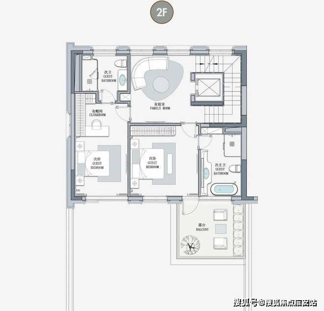 客厅互通,彰显家族生活的轩阔厅堂,2F家庭层,儿女的幸福与陪伴皆在左右,3F总裁套房式Penthouse,用具象的尺度描写人生成就的高度。