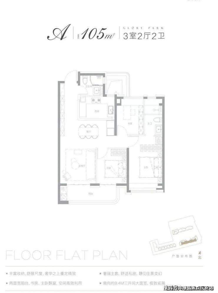 其中,建面约105m²3房