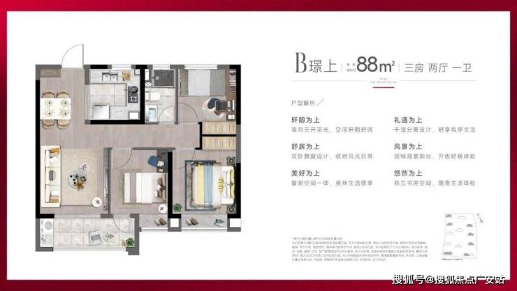 建面约88㎡3房2厅1卫