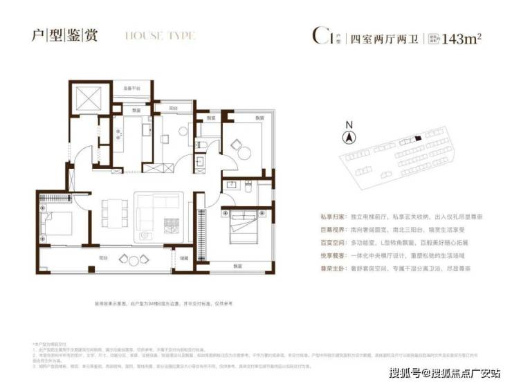 143㎡ 4 房 2 厅 3 卫:四开间朝南,约 6.4 米横厅,改善主力