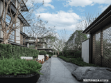 小区外立面采用铝板、高级灰真实漆、大面积玻璃的有机结合处理。