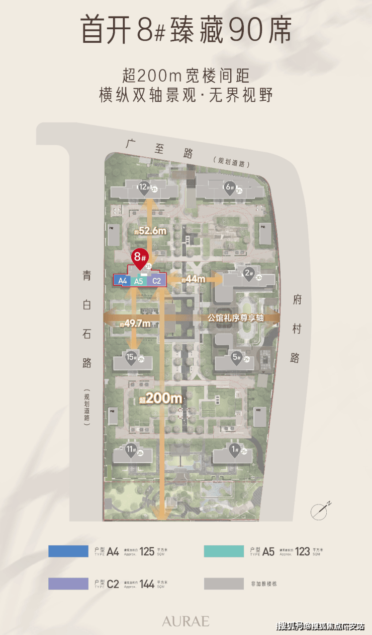 首开楼栋确认,将推出8#楼王 ,双轴景观环绕,享超阔楼间距最长约200m,建面约123-125-144平王牌户型即将过会。