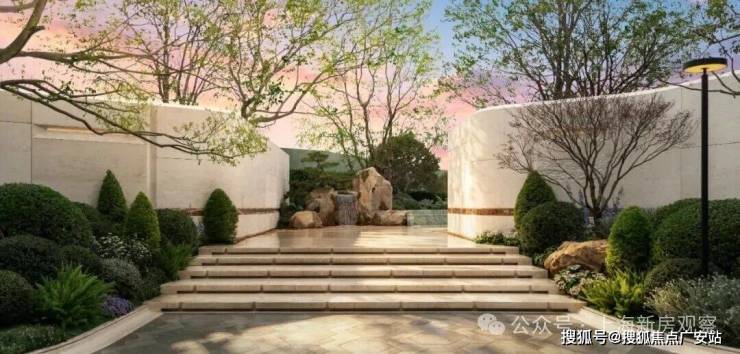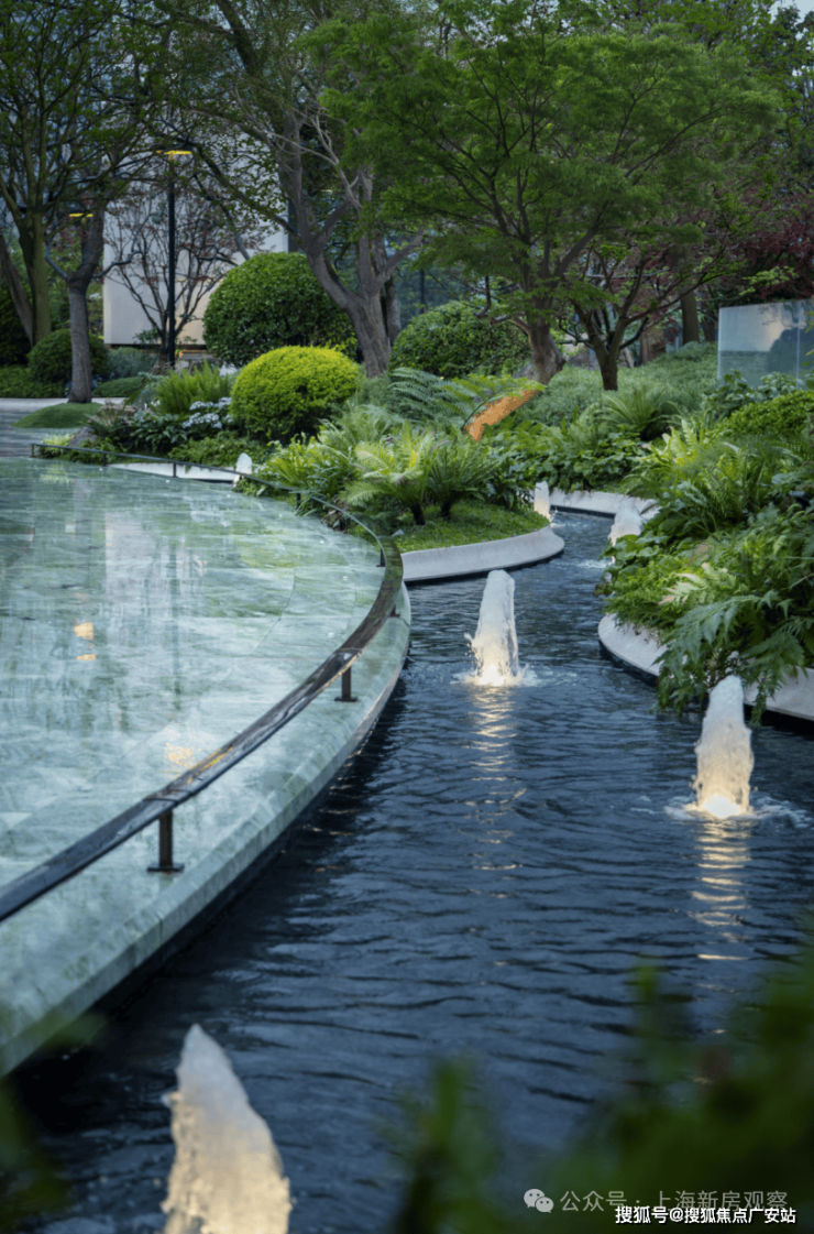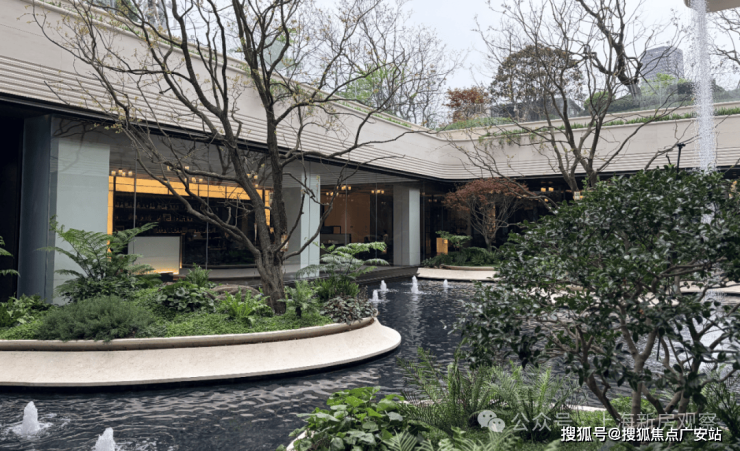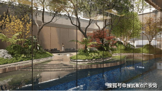 “一帘水幕连天地,半园自然半园家”。下沉庭院的水境森林以无界水池环绕,立体水幕将公园与会所、下沉庭院串联,水声隔绝了外界喧嚣。你在这里散步、静坐、会友,不会有外人打扰。