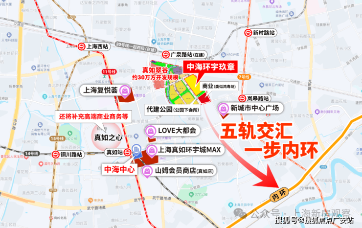 真如芯・内环旁|【中海环宇玖章】落位普陀真如翠谷核心,距内环约1公里,占位真如城市副中心 “伟大的一平方公里” 规划腹地,享约2000亿城市更新红利。