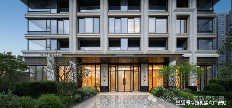 普陀独一档的立面质感,采用石材、仿石铝板搭配玻璃,门头部分则选用巴西世贸金麻石材搭配安哥拉黑石材,就连大堂门把手也精选宇宙黑金奢石,加上芬迪白大理石的大堂背景墙,整体建筑无一细节不是在刷新新房的品质天花板。