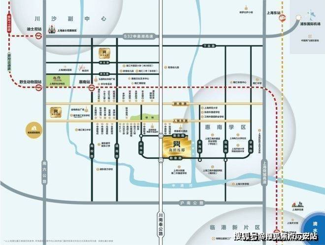 而项目位于惠南城芯区域,距16号线惠南站直线距离约1.5公里,紧邻主干道川南奉公路,出行非常便利。
