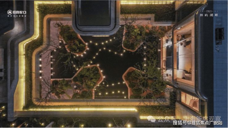 在此能俯瞰整个社区最核心的、浓度最高的景观节点。地上的戏水池和架空层,地下的多层次庭院都尽收眼底。峡谷意境的立体庭院,让湖居生活充满独特的诗意。