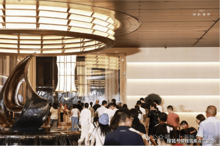 嘉定首见双层归家大堂:总高约13.7米的双层归家大堂,整体的设计风格参考游艇的甲板,上方悬吊的是以灯塔为创作源点的吊灯,恰如整个林屿湖畔峡谷意境湖区会客厅,也是远香湖畔最璀璨的美学灯塔。