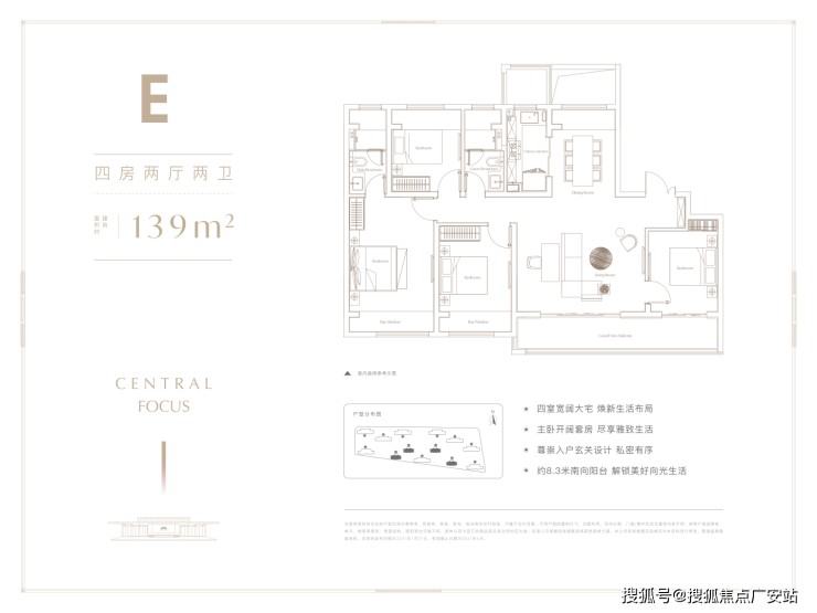 户型:103-139㎡三至四房,精装交付(含地暖、新风、中央空调),部分户型带3.7米大飘窗