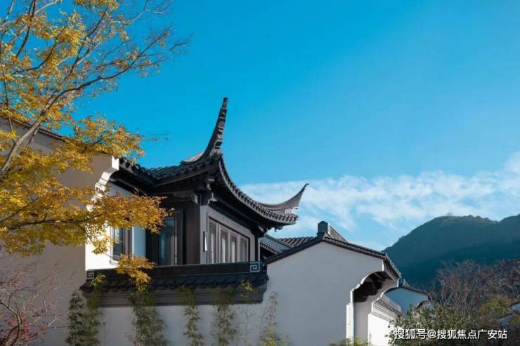 建筑风格:纯正宋式中式,白墙黛瓦、飞檐戗角、月洞门、回廊挂落,手工云纹瓦当,承袭《营造法式》,获IDA国际设计大奖