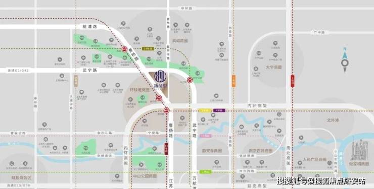 项目位于武宁路、曹杨路、真华南路围合而成的三角形区域内。 毗邻普陀“一轴两翼”功能布局中武宁路科创发展轴。