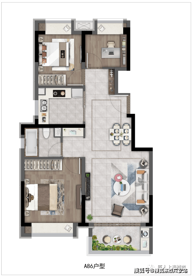 整个项目由高层和洋房组成,外立面为现代简约风格,底部采用天然石材干挂,三层以上为真石漆。小区由12栋楼组成,包含3栋洋房和9栋高层,其中4#楼为自持房,9#楼为保障房,其余均为商品住宅,共计852套商品房。