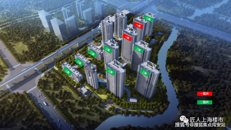 项目占地约4.2万方,总建筑面积约17.2万方,规划建成住宅10.7万方(含4#楼自持及9#楼保障房),地块东侧有自然滨河水景南横泾,北通黄浦江,南入浦南运河,为小区营造了绿色宜居的住宅环境。