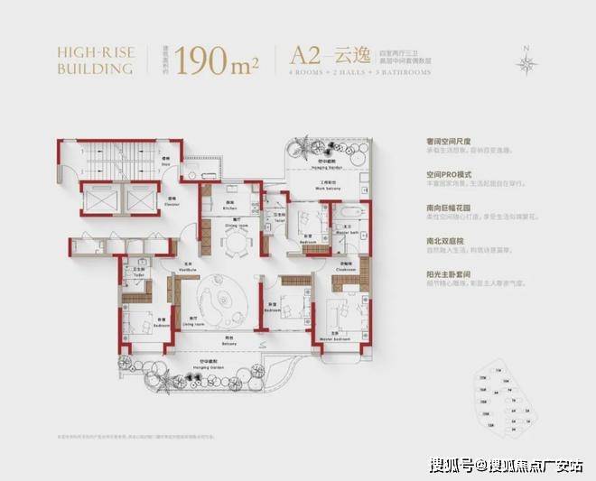 再来看看户型设计,完美呼应了四代宅的超高使用率,空中露台、阳台等各项数据的尺度非常惊人。