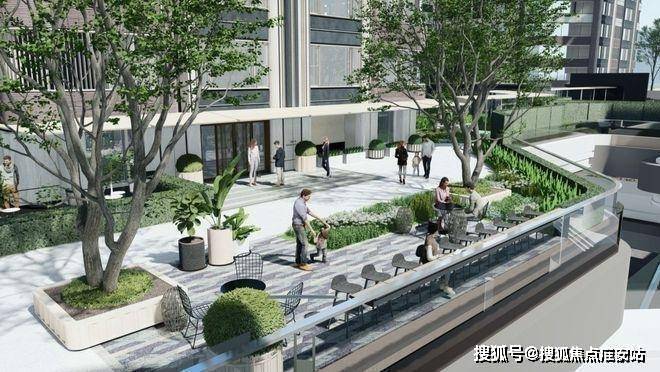 项目在街边的转角、街区的外廊,均打造 城市花园长廊, 超级绿核枢纽45度角贯穿街区, 南向出门即享由万科代建的中兴公园,公园绿意被充分引入中心广场……