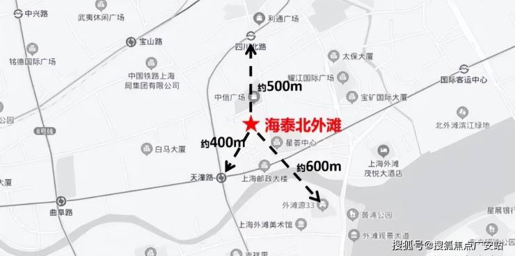 「海泰北外滩」位于虹口区四川北路塘沽路(江西北路以东,塘沽路以南,四川北路以西和规划七浦路以北),距离外滩源仅有600米