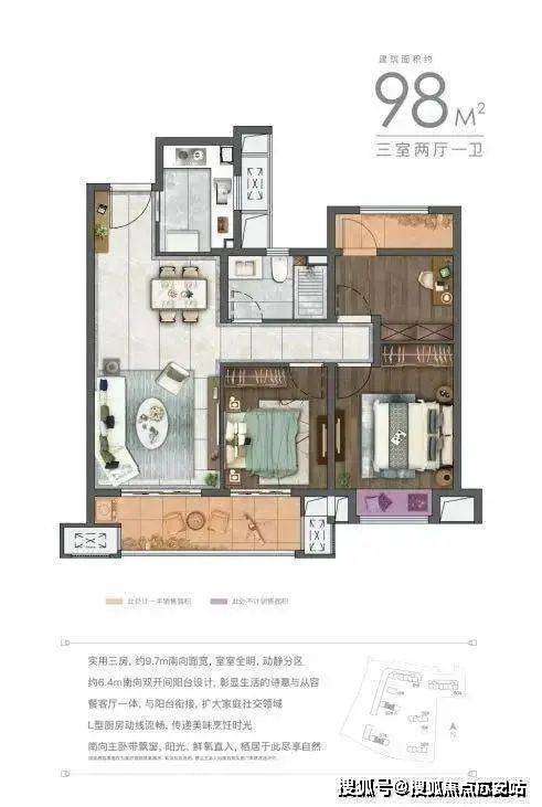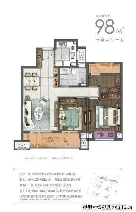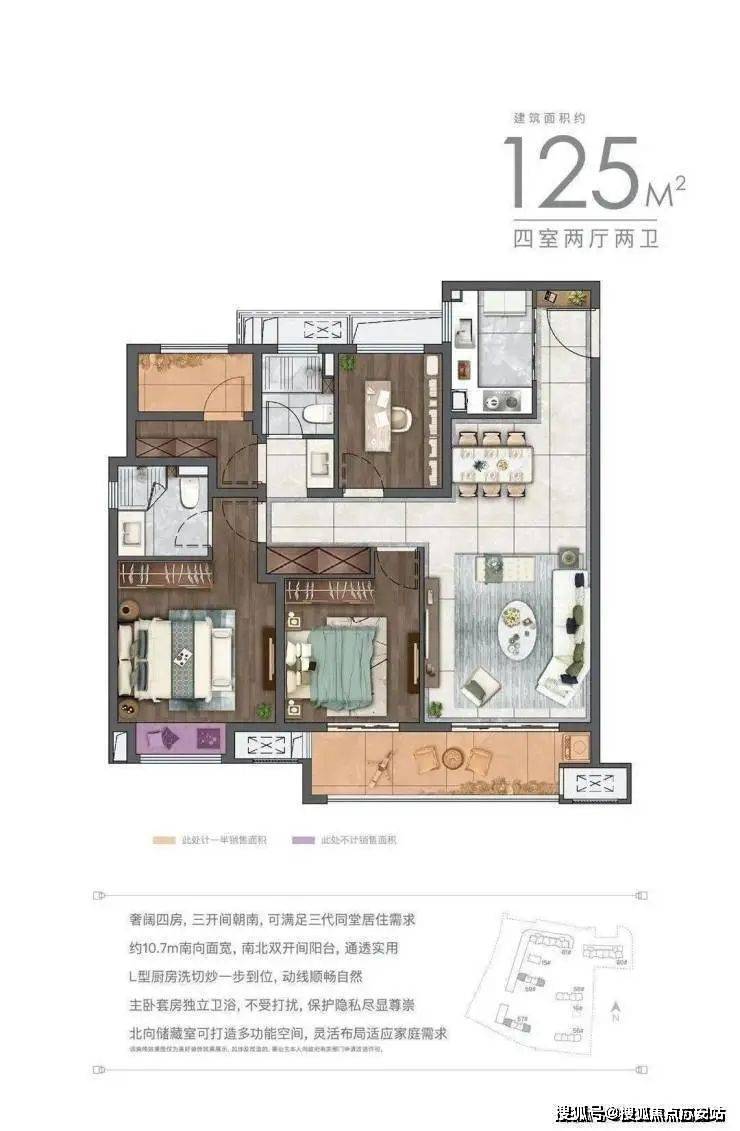 【尺度优居】建面约98-125㎡全能户型,最大约10.7m南向面宽,主卧套房配备独立卫浴,北向空间可改造多功能室,随心布局满足家庭成长周期所需