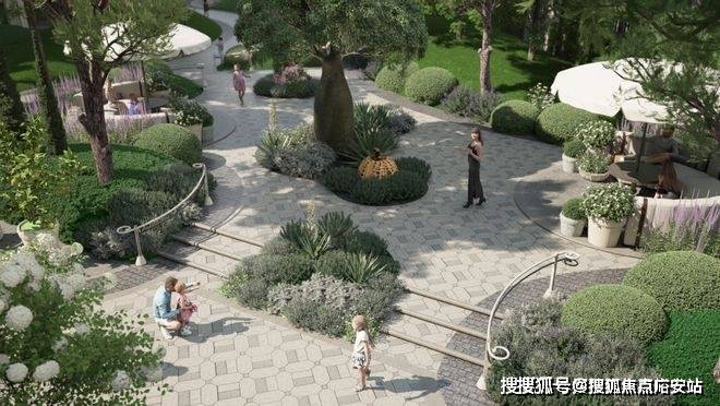 散布在草坪与建筑之间的小花园,是另一种更精细的叙事。它们以主题化方式呈现,被有意设计成“可被收藏的风景”——其以极致的植物配置、质感化的铺装与装置营造出极富品位的观赏性。漫步其中,仿佛置身私人庄园的园艺漫游路径,每一次转折都会遇到一个姿态不同的景致。