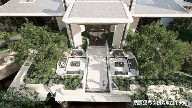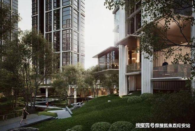 澐启滨江选择把这一切托付给“水”,也托付给一个以下沉水院为核心衍生的花园体系。它不是一个景观节点,而是一种居住哲学的具象化——在城市心脏处,以静水为引,以层层递进的自然密度,让生活回到最松弛、最深处的那一面。