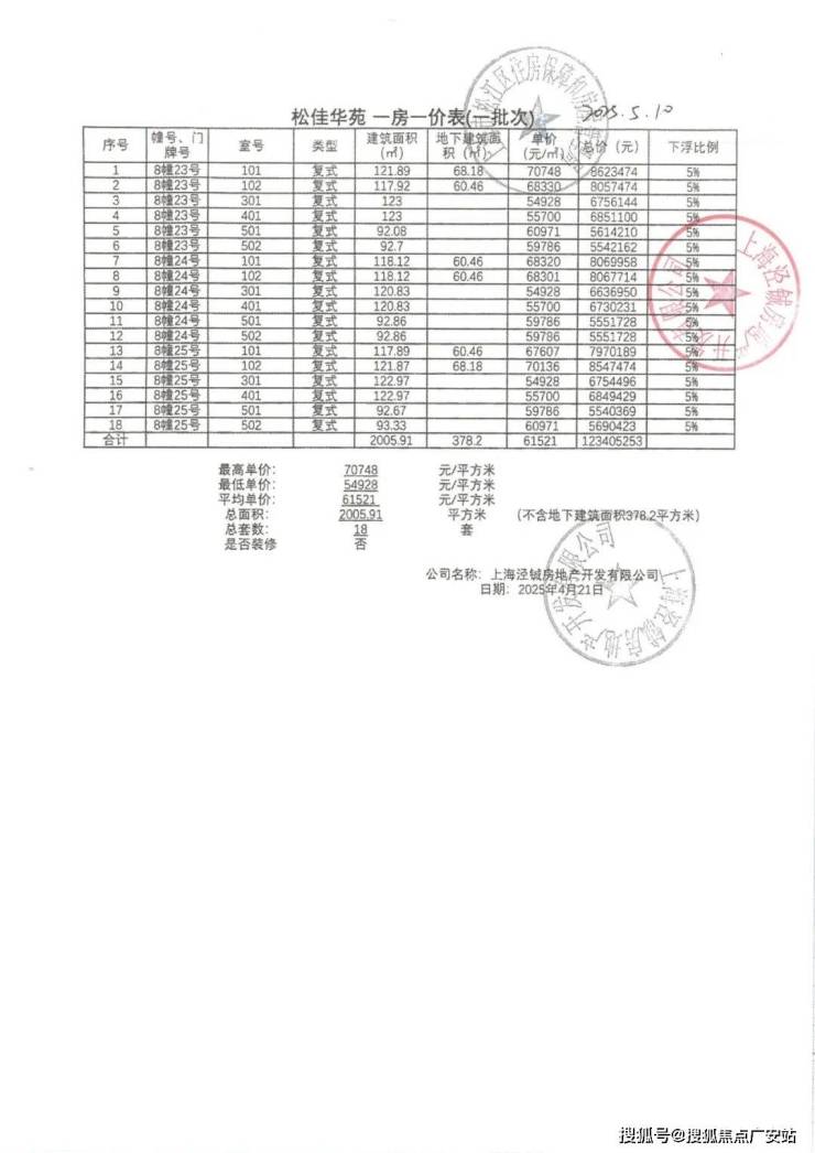 上期一房一价表如下:
