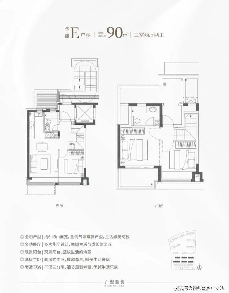 华发还有目前松江比较稀缺的叠加房源,分为六层叠加和四层叠加。主力户型建面约90-133㎡,特别是这个E户型,建面仅约90㎡,对于想住叠加但预算有限的购房者来说,面宽约6.45米,上下动静分离带,是个不错的选择!