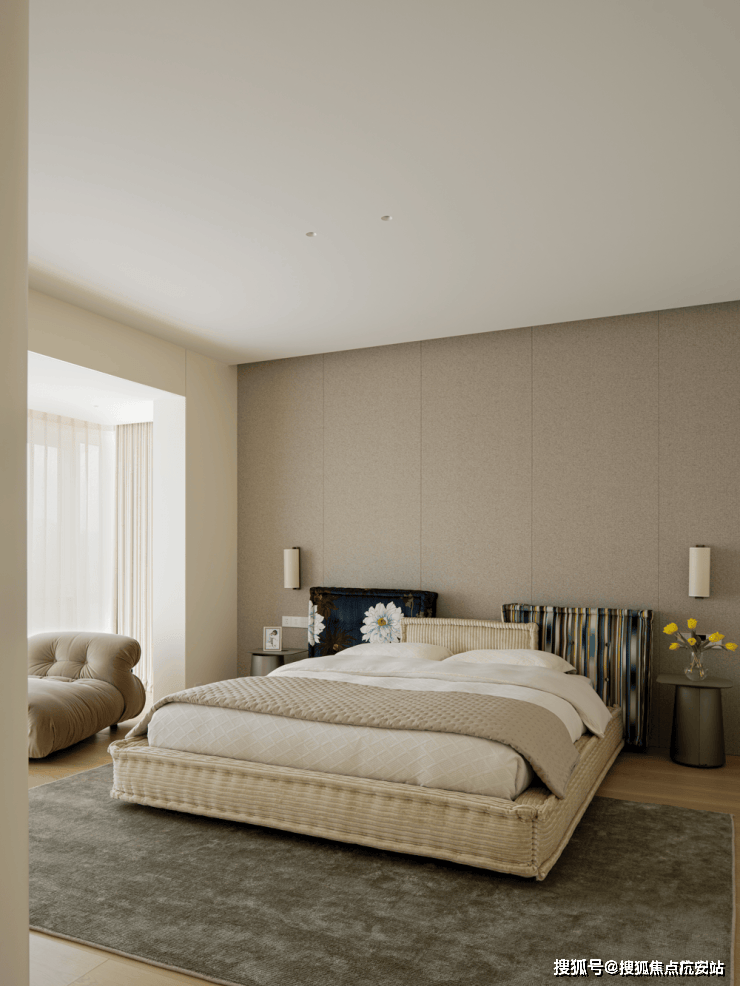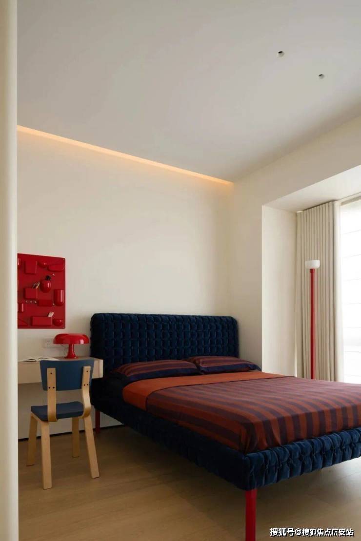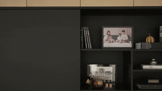 中央的B&BCamaleonda模块组合沙发,以岛状布局重构空间逻辑,双向陈设的低椅背设计。一面朝向书柜电视墙,一面衔接餐厨区。让场景切换随心意而生,既保持空间通透感,又以功能分区提升使用效率。