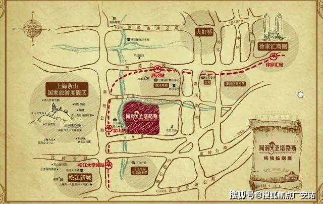 【同润圣塔路斯】位于松江泗泾版块,项目东临刘五公路、北面和西面临天然河道——泗泾塘、南临古楼公路;项目占地约26万㎡、建筑面积约10万㎡、绿化率约70%、容积率才0.3,由130套独栋别墅组成。
