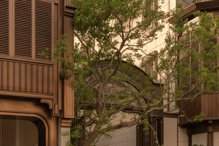 更令人动容的是对自然的敬畏,为红线外60年以上树龄的原生古树,特别是那两棵象征士族身份与军功的百年广玉兰,项目主动进行红线退让。打造红线外绿带,为其定制陶粒枯山水景观,让历史与自然在当代和谐共生。