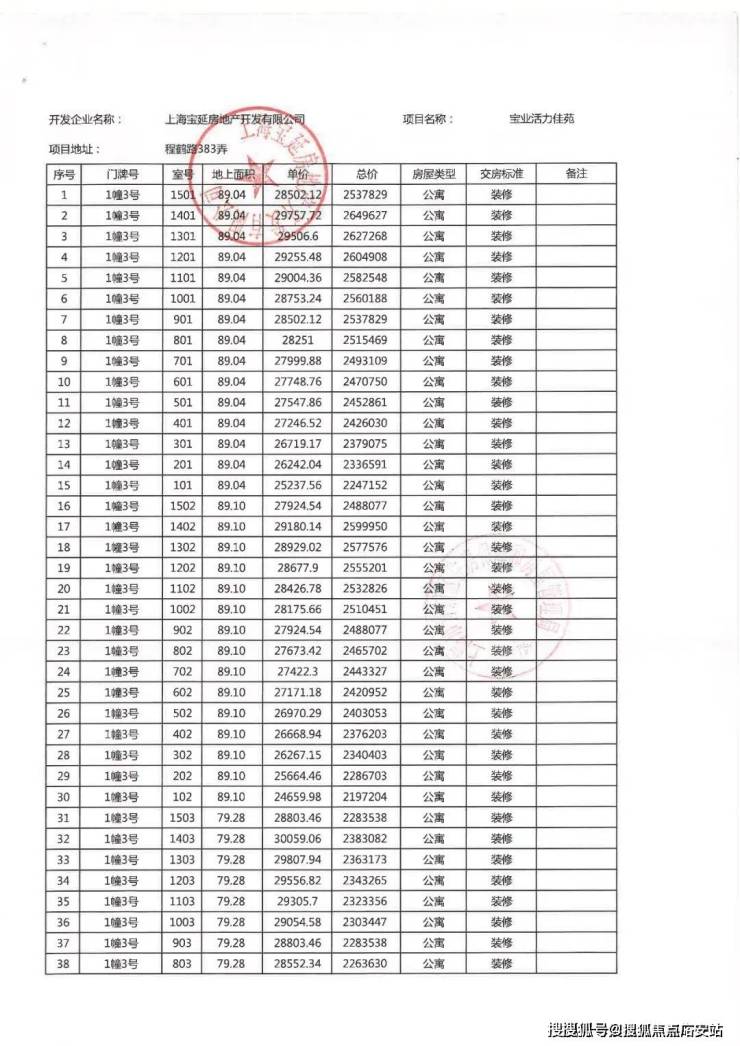 一房一价表