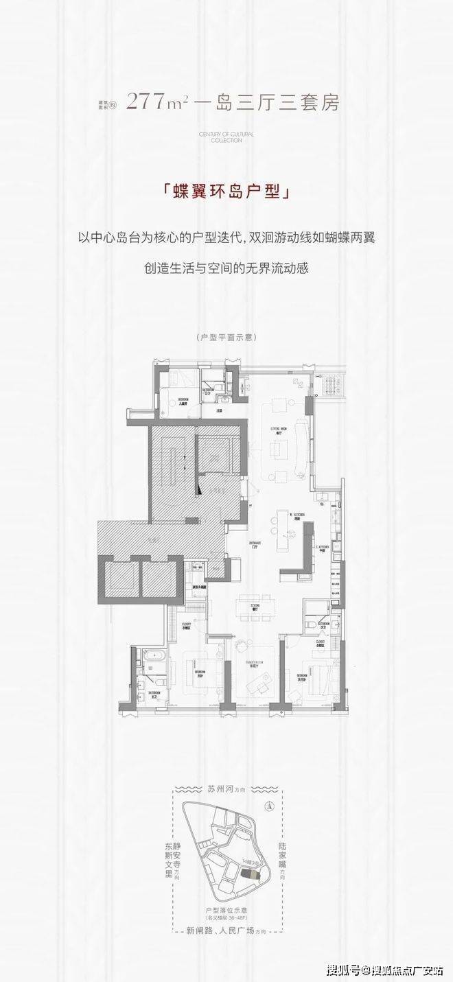 总体设计因地制宜“一叶四星”进行布局,充分发挥三边沿街,一边临河的环境优势,将最高的1号楼(49层)的建筑布置在成都北路与新闸路转角处,次高的2号楼、3号楼(44层、45层)分列成都北路、新闸路两侧,4号楼(16层)布置在基地北侧,形成了一个高低兼顾,启承有序,开阖有度的整体布局,结合历史风貌保护要求,沿成都北路,新闸路,南苏州路风貌复建地块内有历史建筑,重塑传统建筑的精神内涵,打造充满文化魅力和历史韵味的城市空间序列。(呈现现代大都会AreDecoo风格)[1]