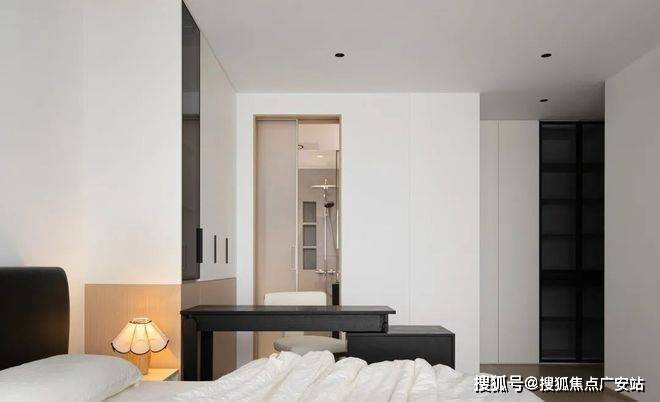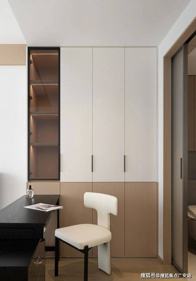 卫生间内退后,外部留出了宽敞的空间,沿柜体摆放了一张兼具办公和化妆功能的书桌,提升了空间的实用性。