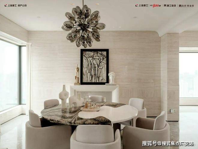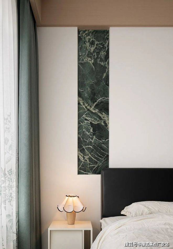 Prada绿岩板的融入为空间增添了深邃的质感,墨绿色底色与白色网状纹理的结合,仿佛深海中的波涛,深邃而迷人。