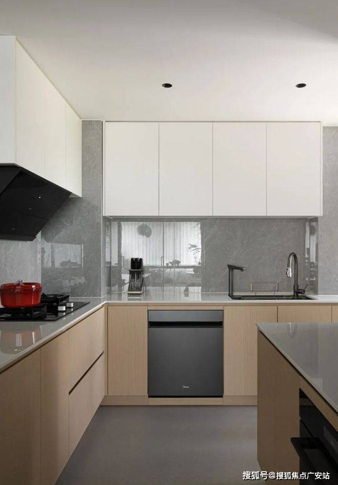 厨房线条洗练,金属的冷静质感与木质的温润柔雅,突显出刚柔兼备的审美立意。