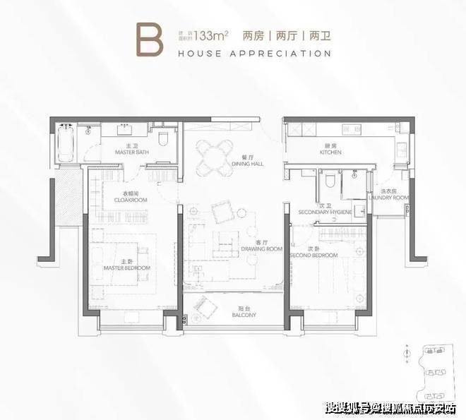 建面约133㎡2房2厅2卫▼