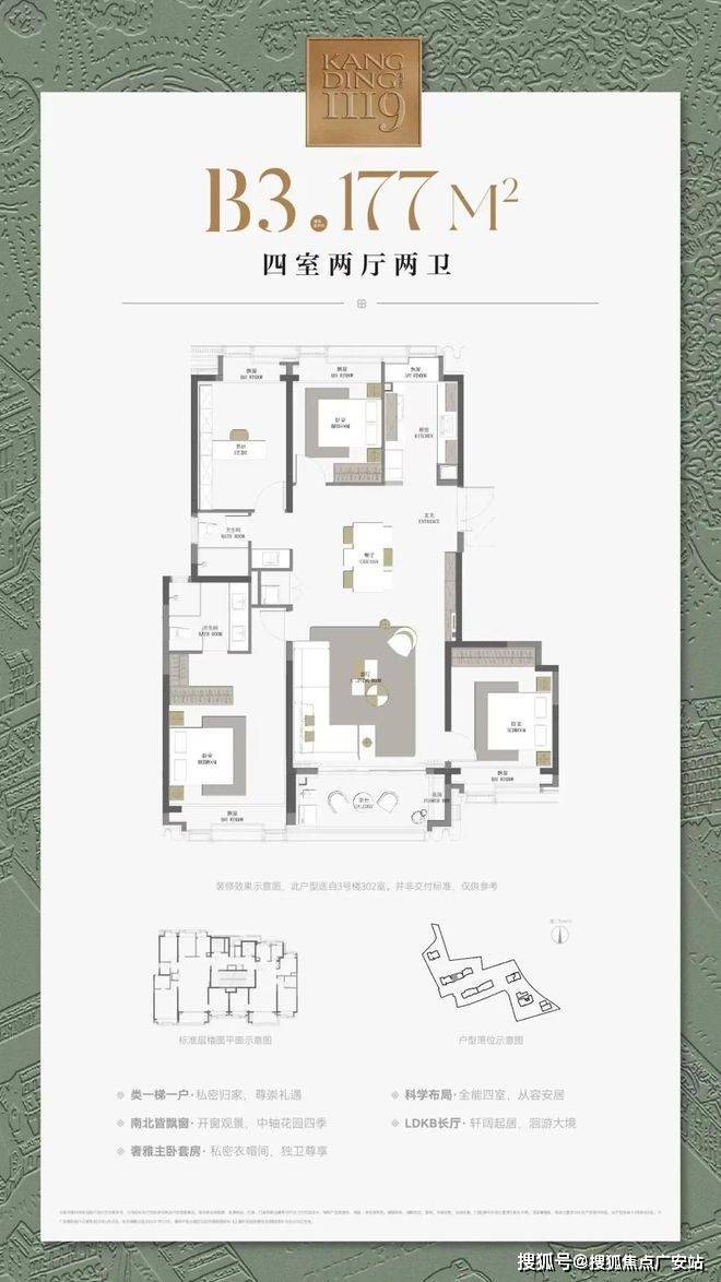 建筑面积约177㎡四房户型,6重采光面,室室皆阳,是对于预算更高的客户,招商给出的又一全新选择。
