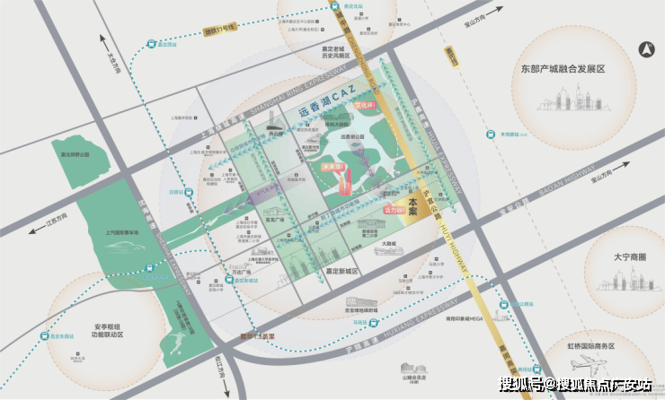 项目就位于远香湖CAZ核心,远香湖CAZ位于嘉定新城的核心区域,是嘉定新城的综合功能中心、城市形象的集中展现区;