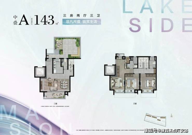 约143㎡ 3房2厅3卫中叠A户型▼