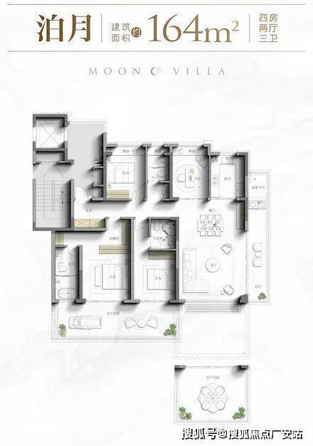 先看四代洋房,约162/164㎡,全四房起步,1梯2户设计,4房2厅3卫。